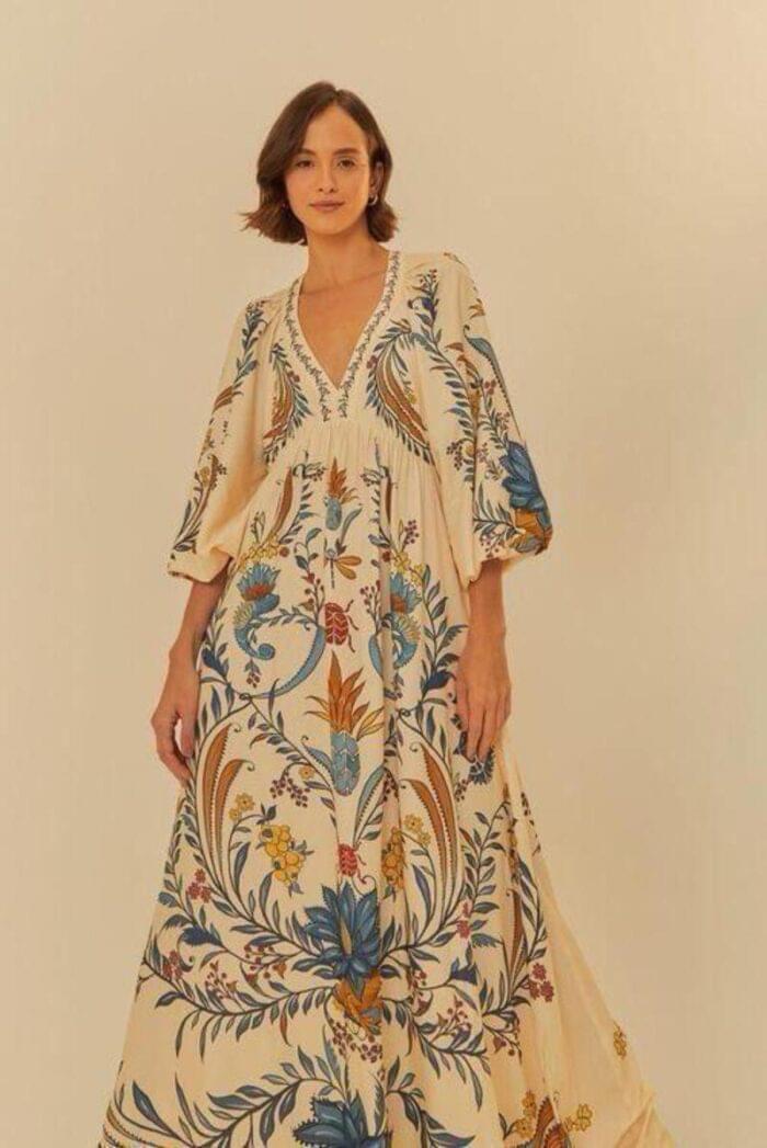 Home Maxi alia cut maxi dress with v-neck and balloon sleeves