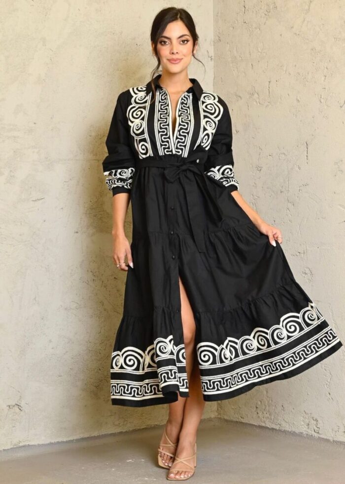 kaftan style long v-neck dress