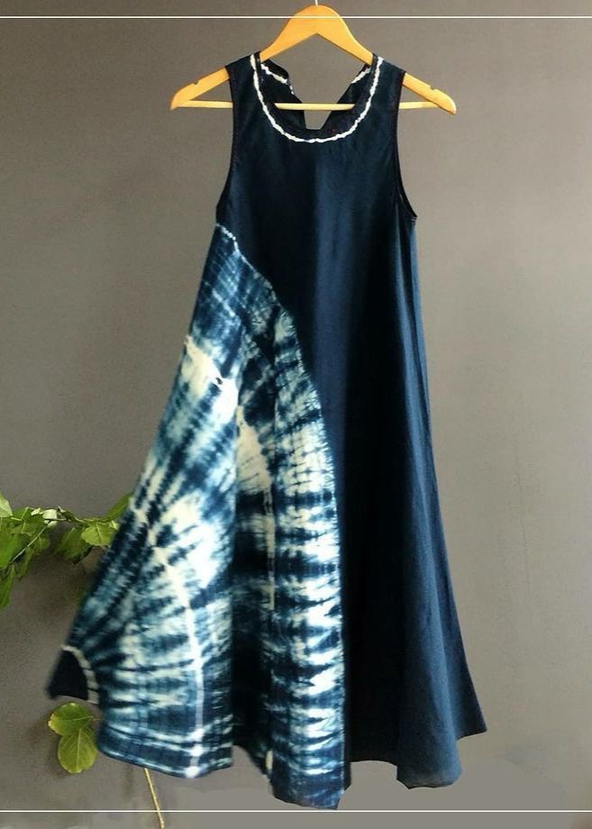 Cotton blend short dress sleveless